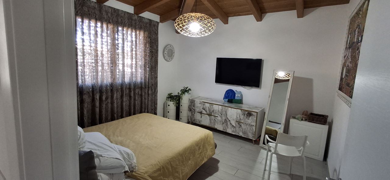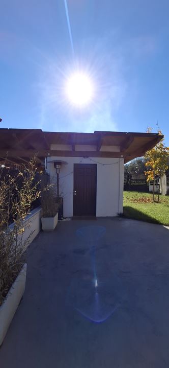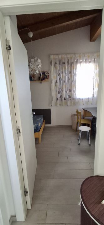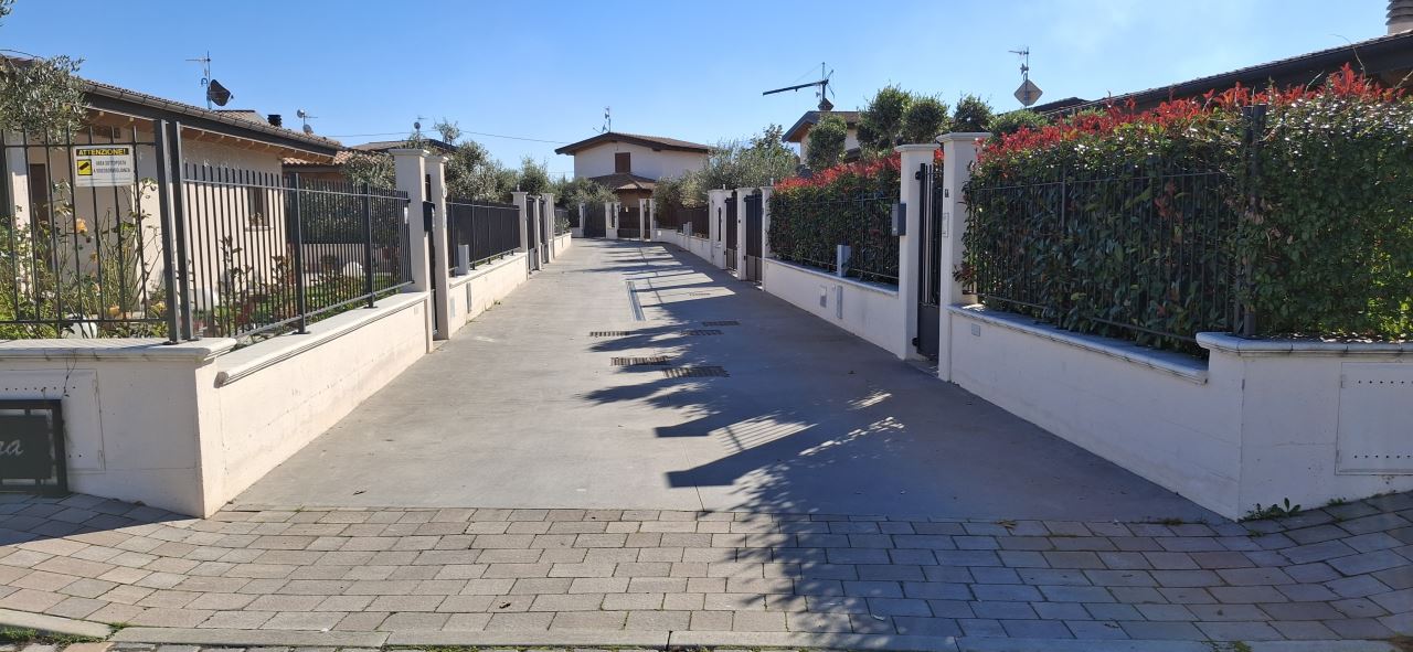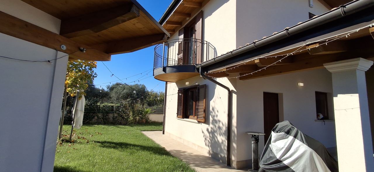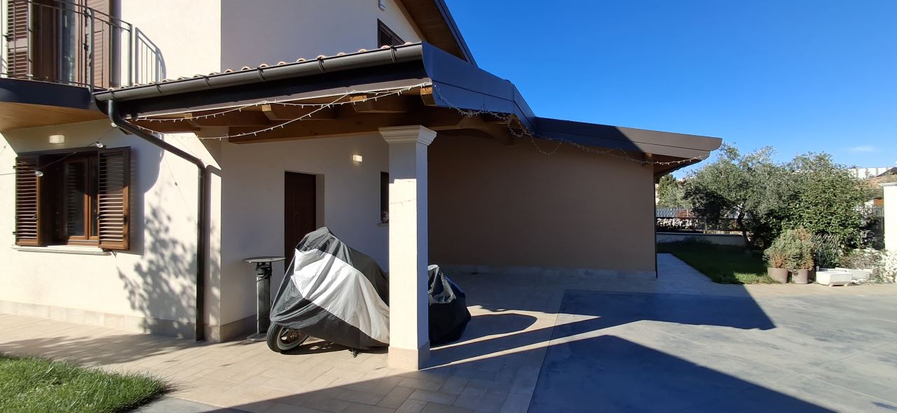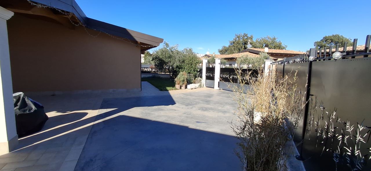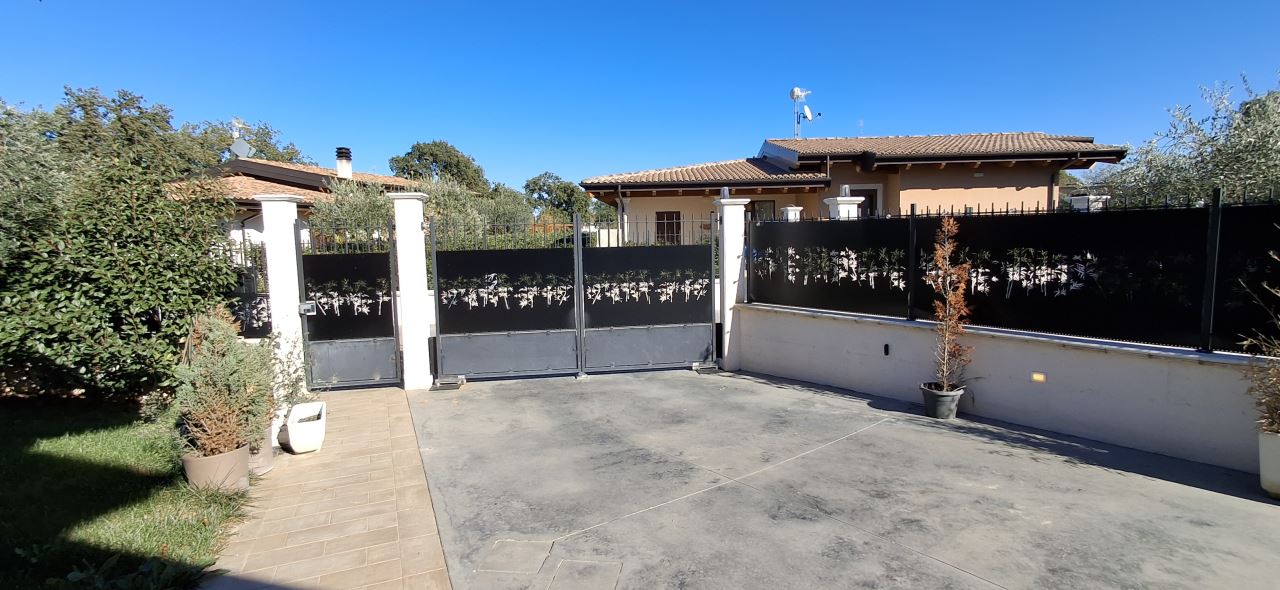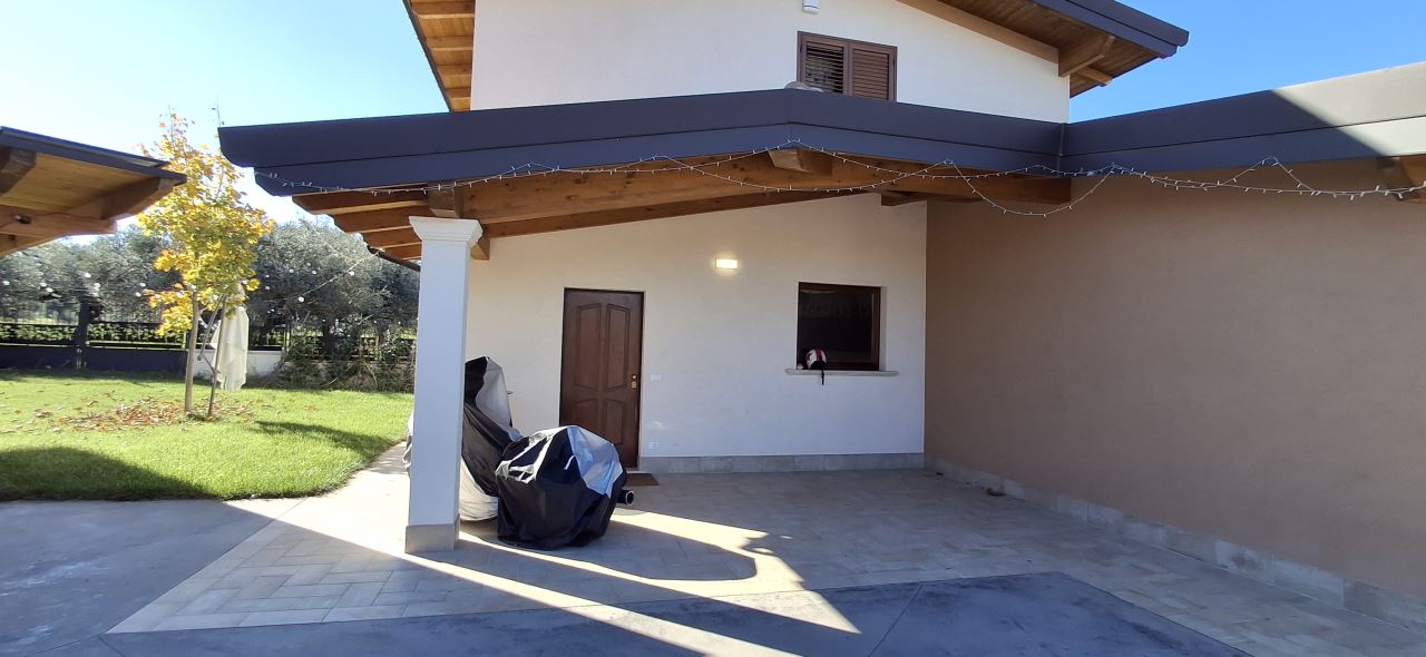 Esternamente giardino completamente recintato, area barbecue, pavimentazione pedonale dal cancello di accesso e perimetrale su tutto l'edificio, massetto industriale carrabile, accessorio di pertinenza adibito a rimessa / sala hobby completa di porta blindata, climatizzazione e copertura con impianto fotovoltaico da 3,00 Kw a servizio dell'abitazione.