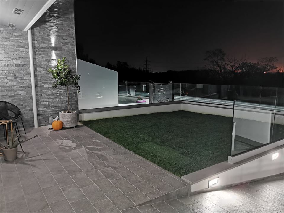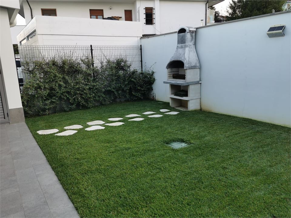 Doppio giardino. Il primo frontale, completamente recintato e ottimamente distribuito tra spazio verde, zona betonellata carrabile capiente di più posti auto, elegante sistemazione degli spazi con parapetti metallici o vetrati. Il secondo giardino posto sul retro della proprietà, anch'esso completamente delimitato, ampio e confortevole come zona relax oltre a presenza di area barbecue.