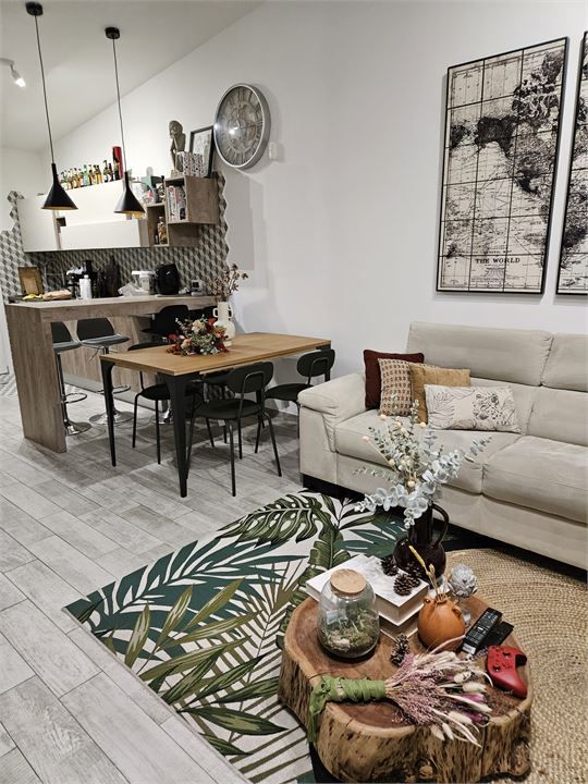 Internamente l'abitazione presenta un accesso nel luminoso soggiorno-pranzo completo di angolo cottura, camino e doppio affaccio sui giardini esterni, disimpegno di collegamento a servizio igienico, comodo ripostiglio/lavanderia, due camere da letto di cui una padronale con bagno esclusivo e uscita per entrambe sui relativi spazi esterni.